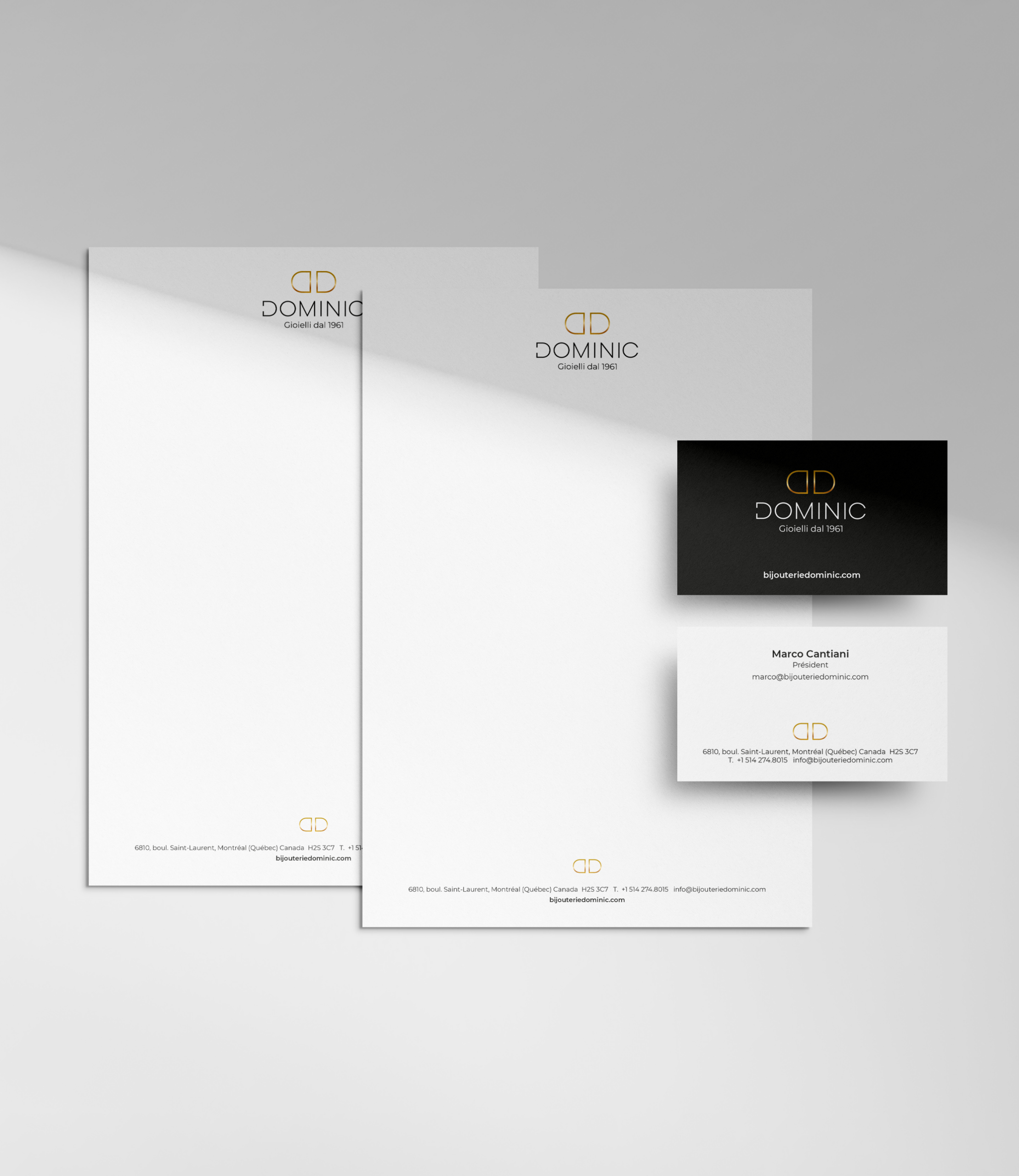 Refonte de l’identité visuelle d’une bijouterie emblématique de Montréal, fondée en 1961 et ancrée au cœur de la Petite Italie. Synonyme d’intégrité et de savoir-faire horloger, la bijouterie Dominic s’est forgée une réputation d’excellence grâce à ses montres et bijoux en or italien 18 carats.