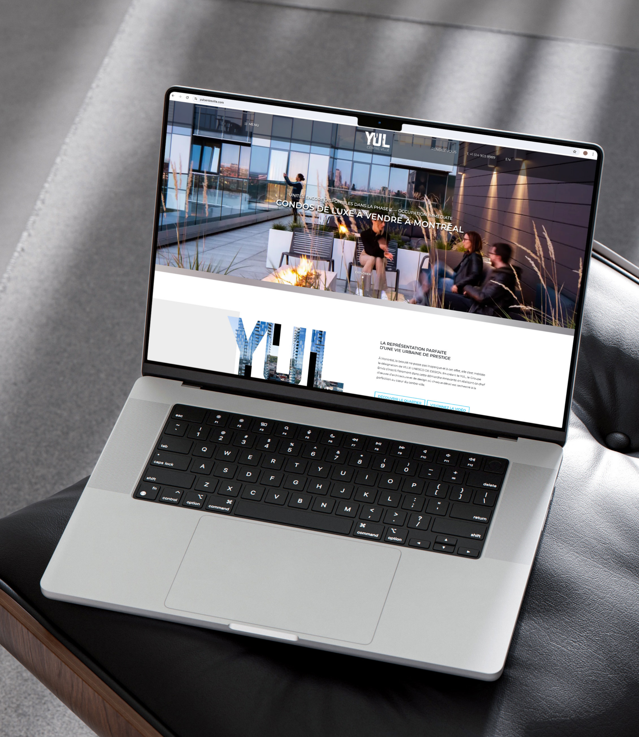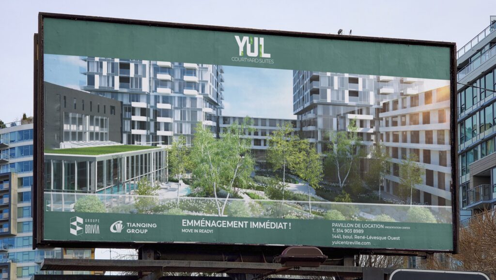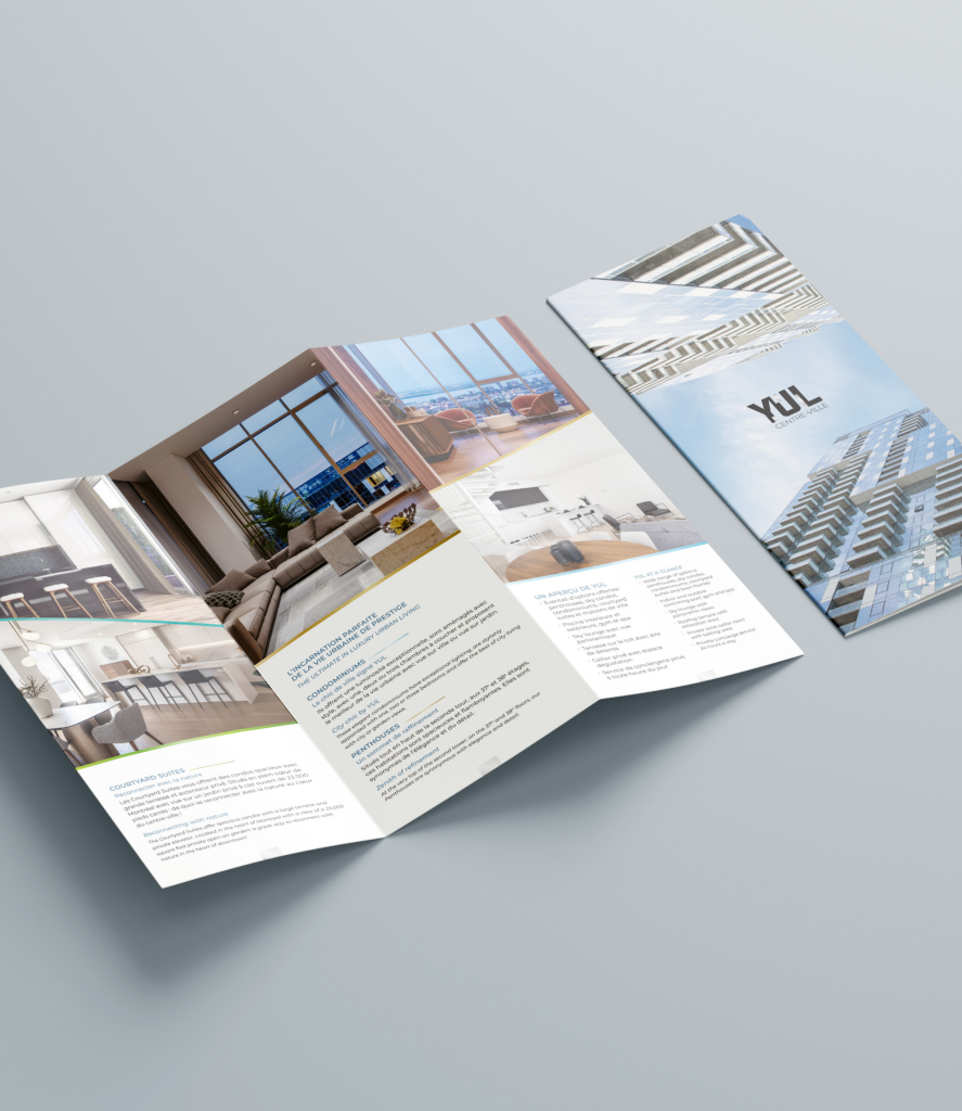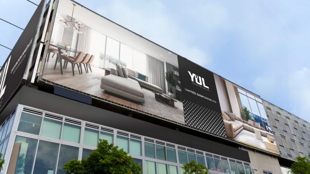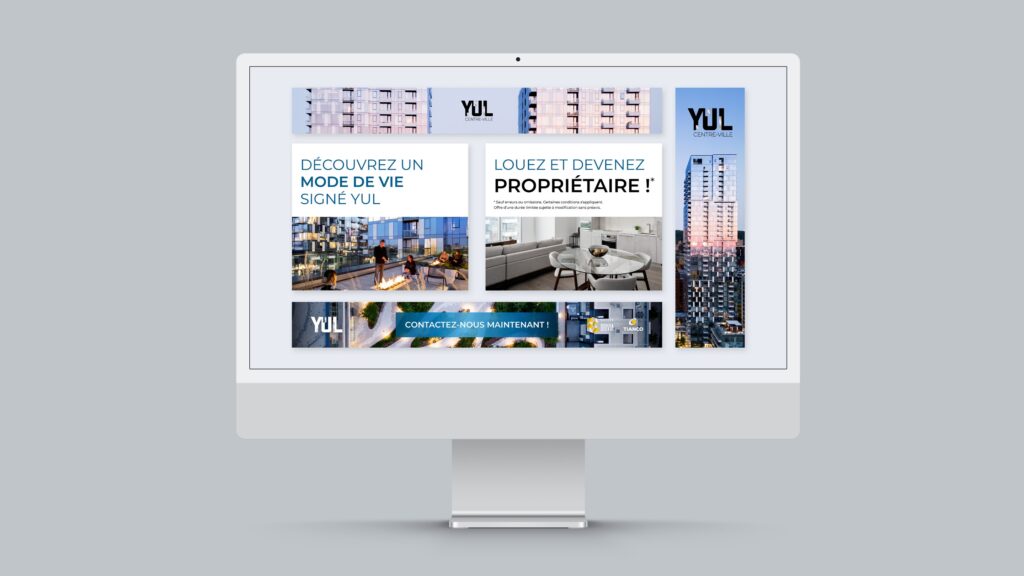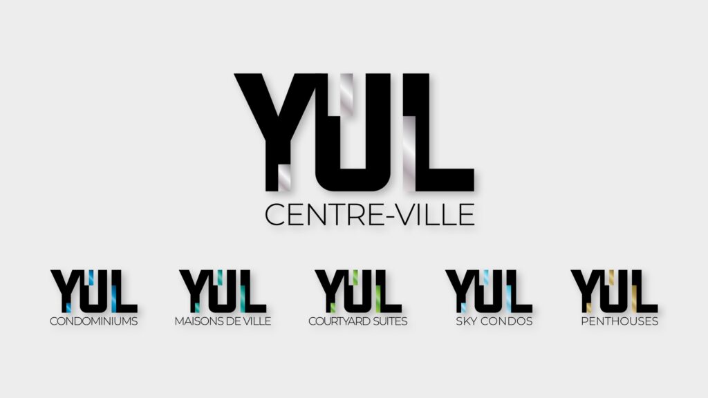 Refonte de l’identité visuelle et déploiement de l’image de marque du projet YUL, un complexe résidentiel au cœur du centre-ville de Montréal.