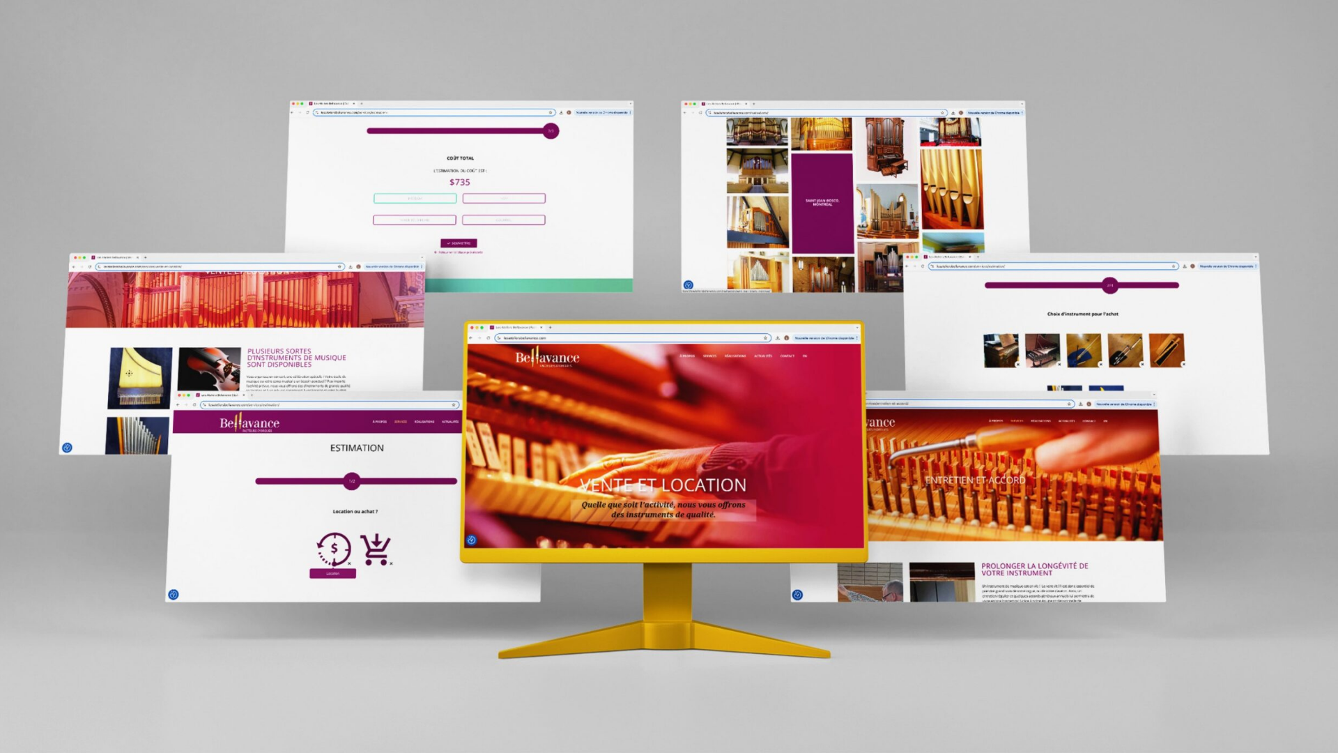 Conception de l’identité visuelle des Ateliers Bellavance, experts en construction et entretien d’orgues à tuyaux et de clavecins depuis plus de 20 ans. Notre mandat comprenait la création du logo, la conception et la programmation du site web ainsi que le développement de divers outils de communication. Cette identité visuelle traduit le savoir-faire artisanal et l’excellence de l’entreprise, affirmant son positionnement auprès des passionnés et professionnels du milieu.